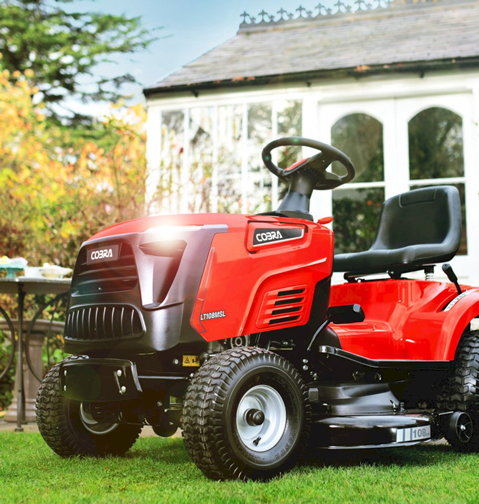 The feature packed Cobra LT108MSL side discharge lawn tractor is expertly powered by an impressive 452cc OHV Loncin engine. The 42” twin bladed cutting deck has the option of either side discharge or mulching and with cutting heights of 25-80mm can tackle short or longer grass with ease.