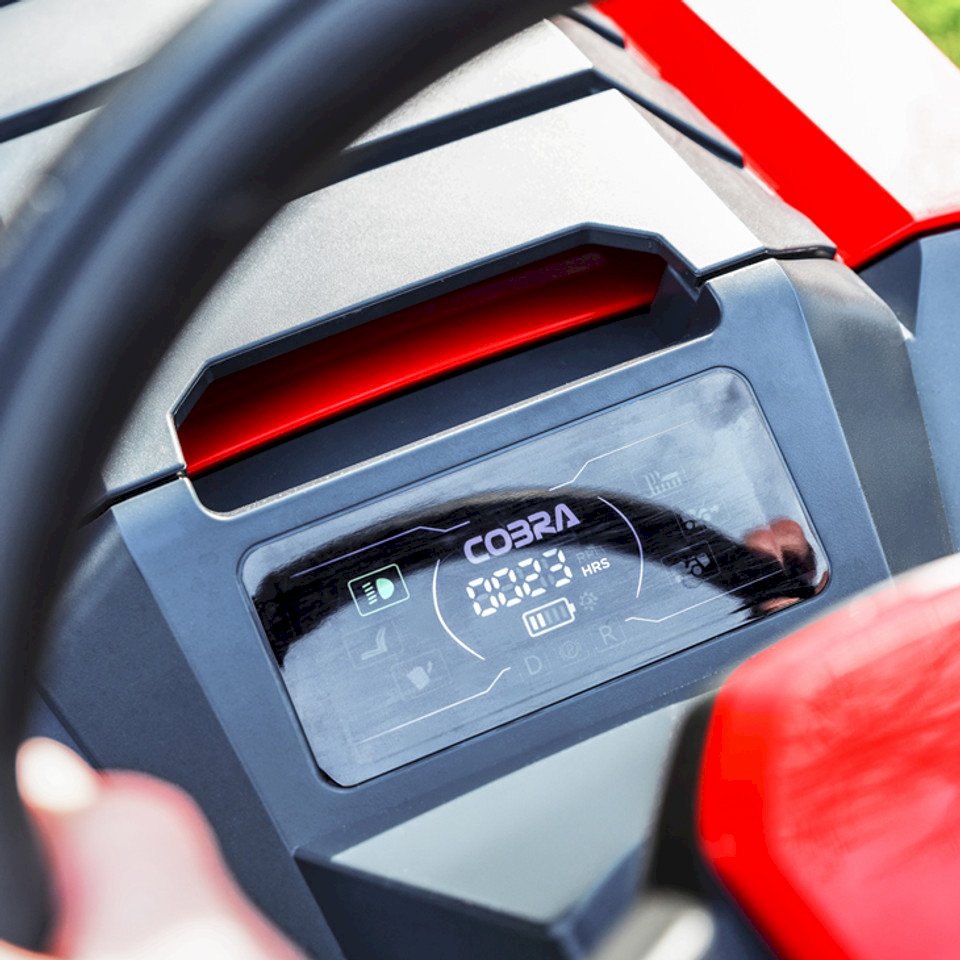 The Cobra LTX92HR2L is powered by a robust 586cc V-Twin Loncin engine, delivering exceptional performance and smooth operation for all your lawn care tasks. It comes equipped with a 92cm (36") cutting deck and a 280-litre grass collector. A standout feature of the LTX92HR2L is its LCD info dashboard, offering the operator easy access to all essential information for effortless operation.