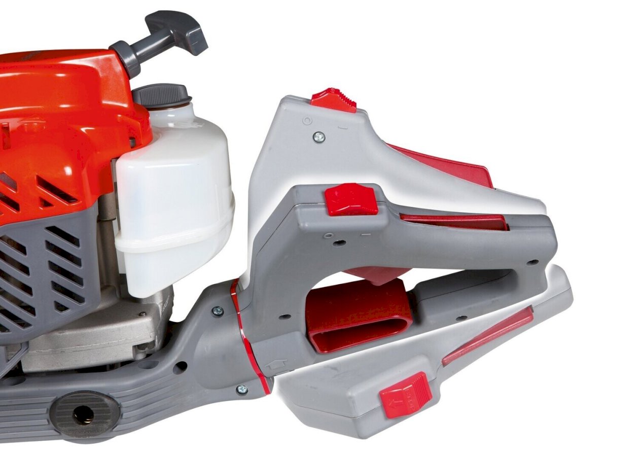 This professional grade hedgetrimmer uses a rear swivel handle which provides easy trimming even working at an angle.