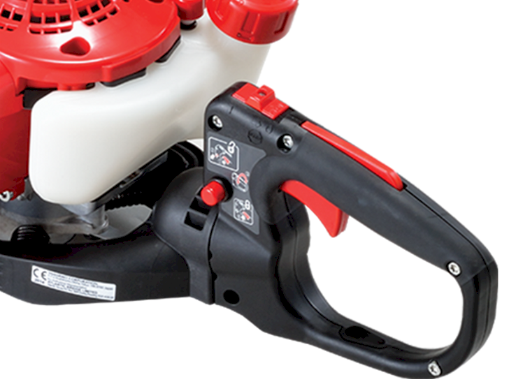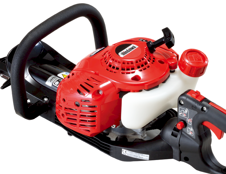 Double sided professional petrol hedge trimmer with adjustment free cutter clearance, Japanese designed and manufactured 21.2cc, 5.1kgs and .6 kw / .8PS output and double 25" blades.