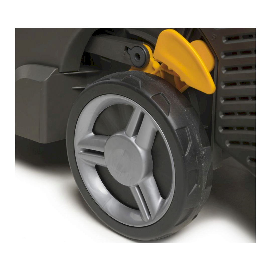 This walk behind mower is lightweight and easy to manoeuvre weighing 12kg. The Combi 36 E comes equipped with larger rear wheels which provide added traction on various types of terrain.
