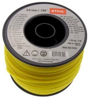 The Stihl (3mm X 168m) Round Trimmer Line measures 3mm and 168 meters in length.