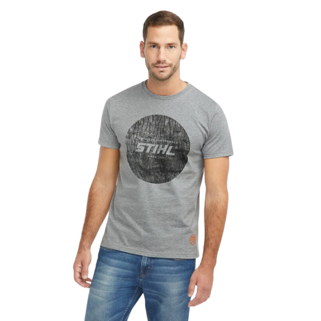 The stylish STIHL Wood Circle T-shirt brings nature back to the city. The large front print with the STIHL logo on a hinted tree slice combines nature and urban design and makes this casual shirt your favorite companion in the urban jungle.